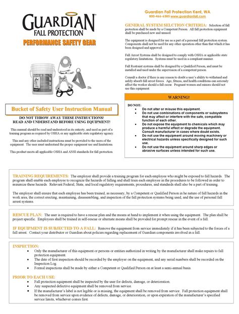 Download GUARDIAN FALL PROTECTION USER MANUAL Paperback Gutenberg